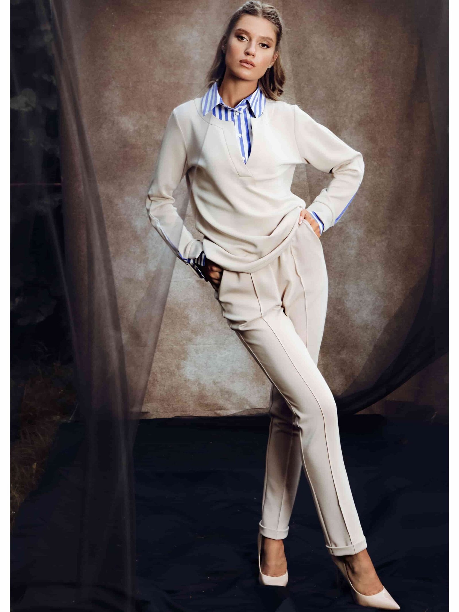 Ženski duks sa imitacijom košulje od pamuka na rukavima, te sa kragnom i lajsnom na kopčanje
