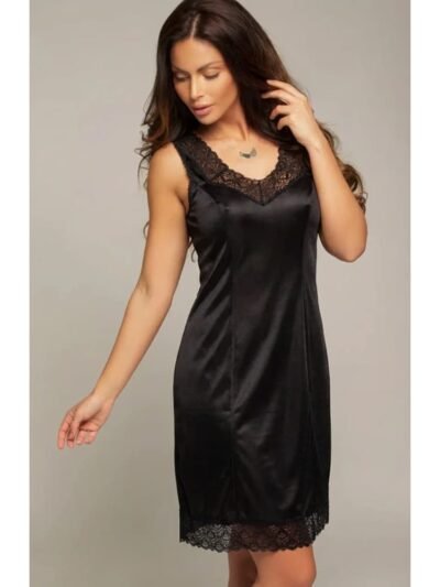 Viskozna kombina sa uskim naramenicama. Ovratnik je na “V” ukrašen čipkom. Prati liniju tijela, jako udobna u dodiru s kožom. Dostupna u bijeloj, crnoj i bež boji.
