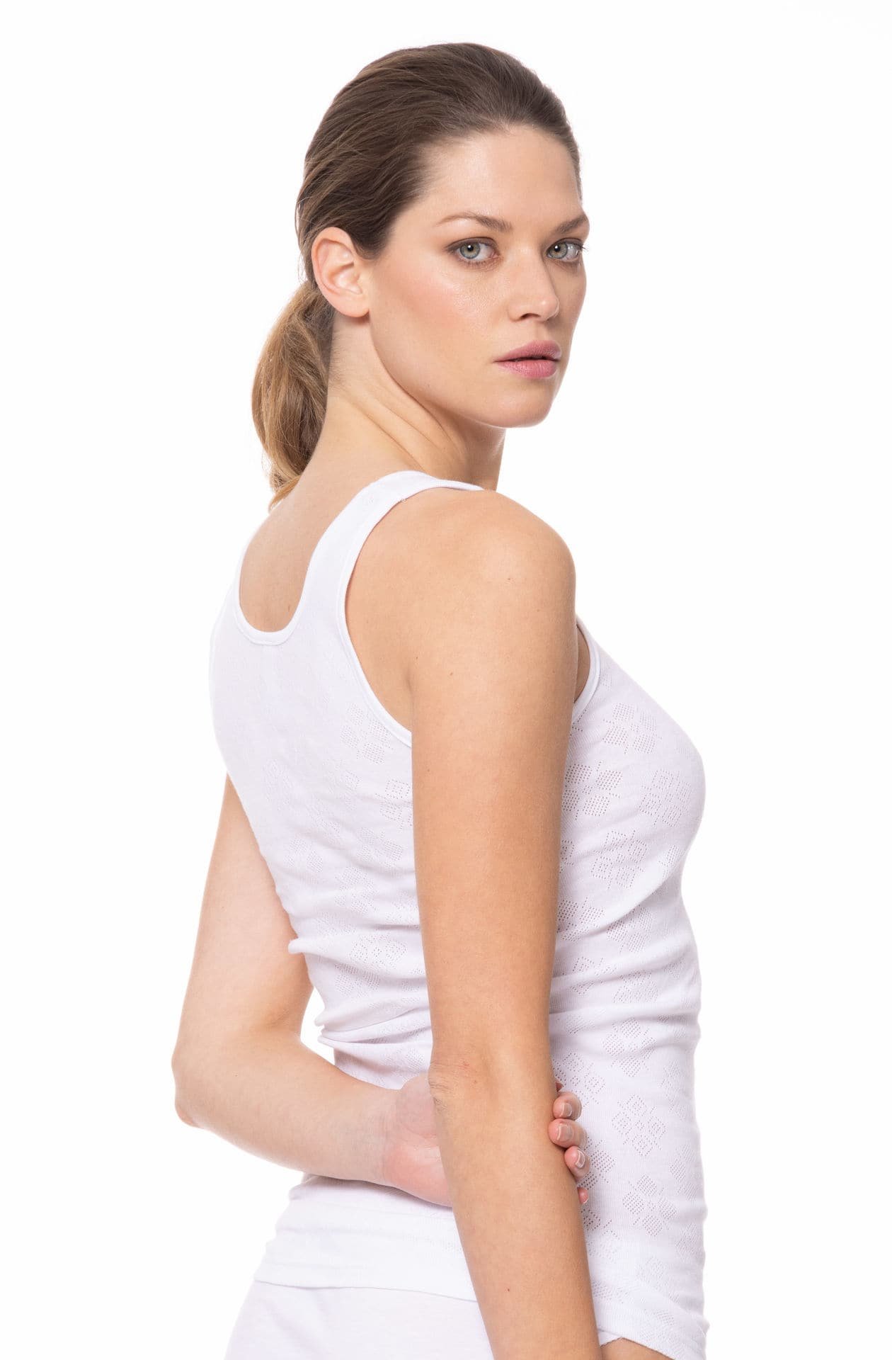 Napravljena od 100% pamuka, sa širokim bretelama. Zbog bijele boje vrlo lako se otkuhava i održava.
