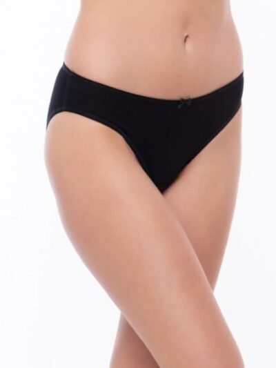 Bazni, jednobojni, pamučni slip sa dekorativnom satenskom mašnicom na prednjem dijelu.